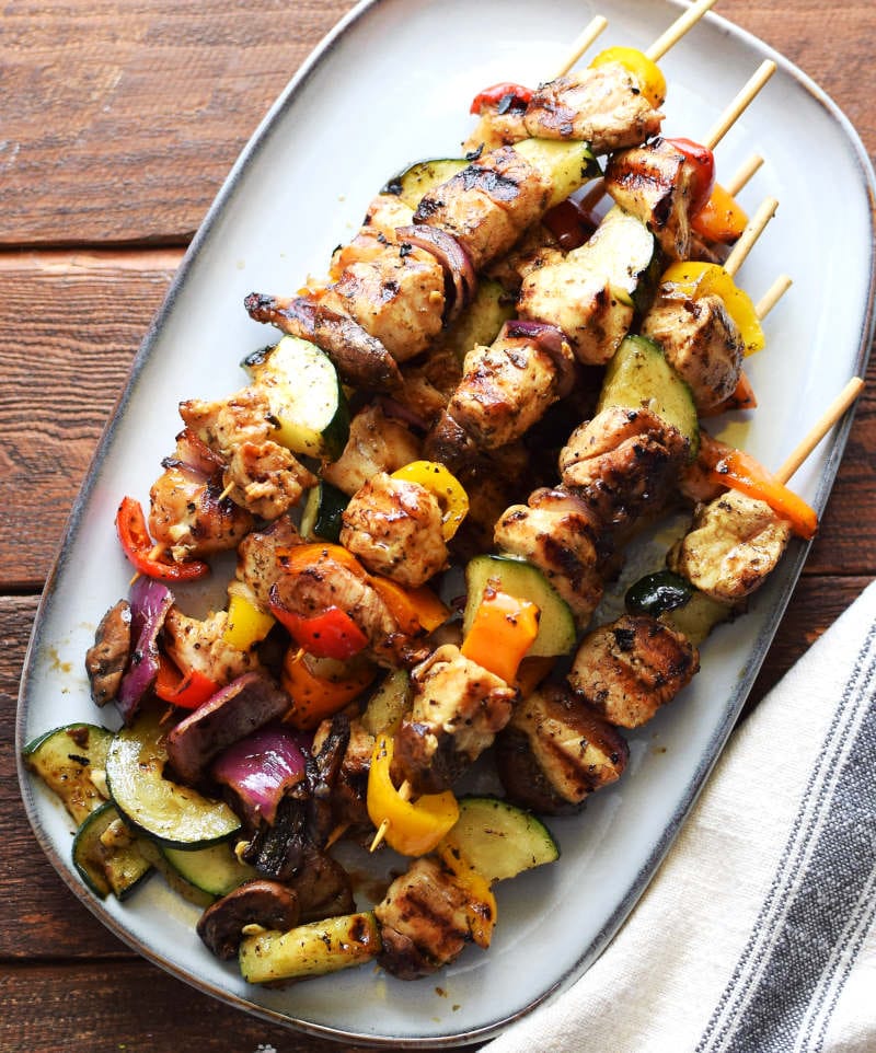 Pincho de pollo con arroz ,chismol y frijoles (Antares)
