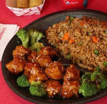 Pollo en salsa Teriyaqui con arroz chino y PAN (Aldebarán)